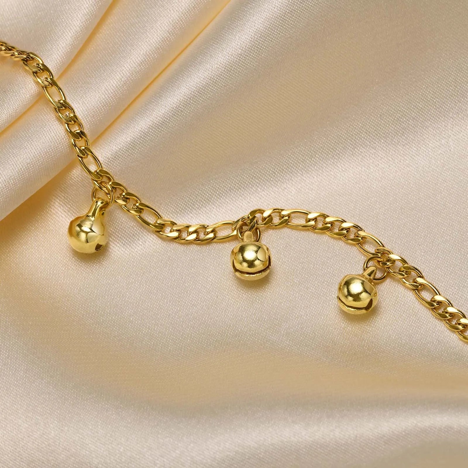 The Tiny Chimes Baby Anklet is a delicate, gold-tone ankle bracelet designed for tiny feet and big memories. Each step comes with a soft jingle, making your baby’s walk even more adorable and full of character.