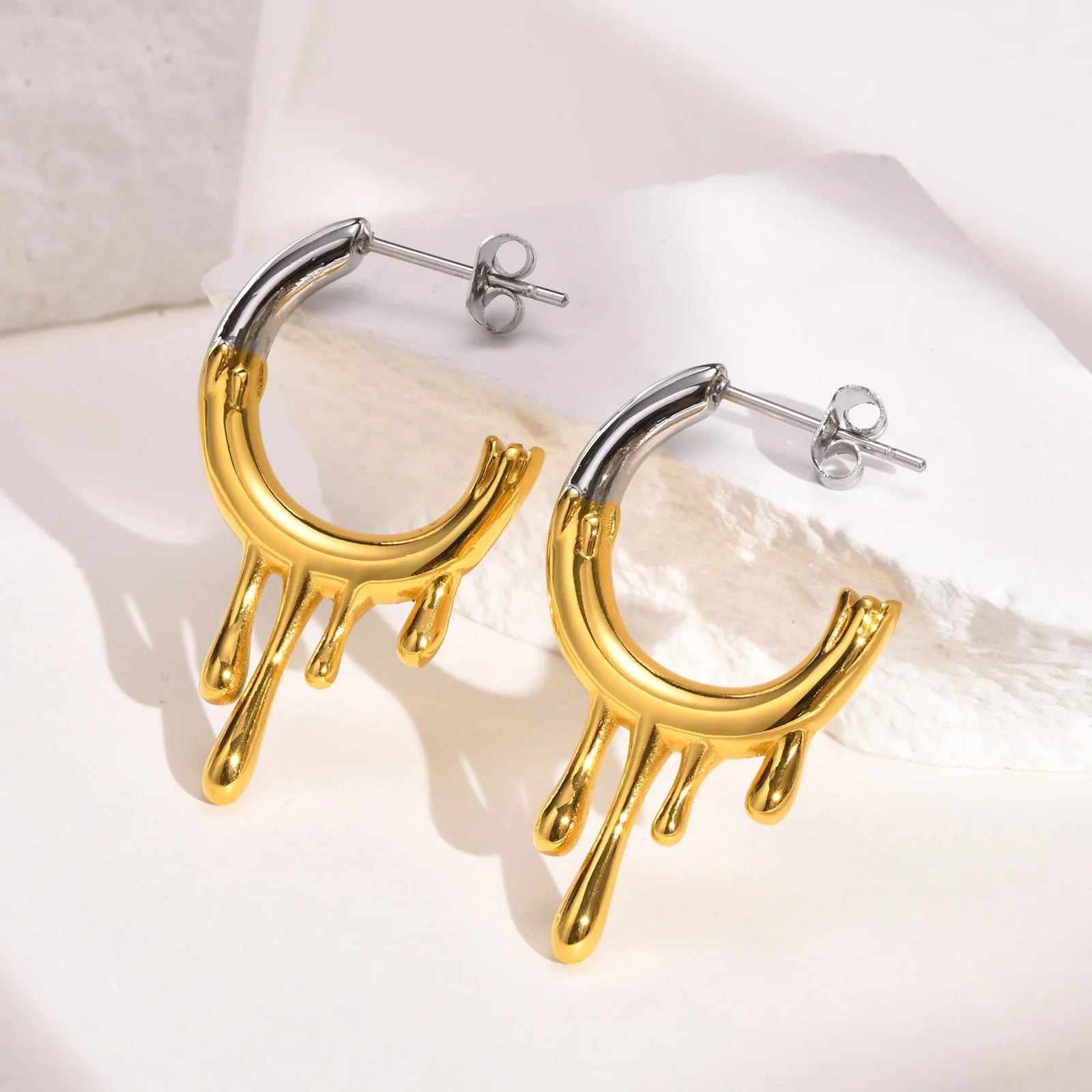 Dare to stand out with the Aurora Melt Earrings — a masterpiece that turns fluid motion into wearable art. These earrings fuse metallic tones with a molten-inspired design that captures light and attention from every angle. Effortlessly blending sophistication and edge, they bring a bold, contemporary energy to any look — from an elegant evening ensemble to your favourite minimalist outfit. Lightweight yet striking, the Aurora Melt Earrings redefine modern glamour for those unafraid to express their individuality with confidence and style.